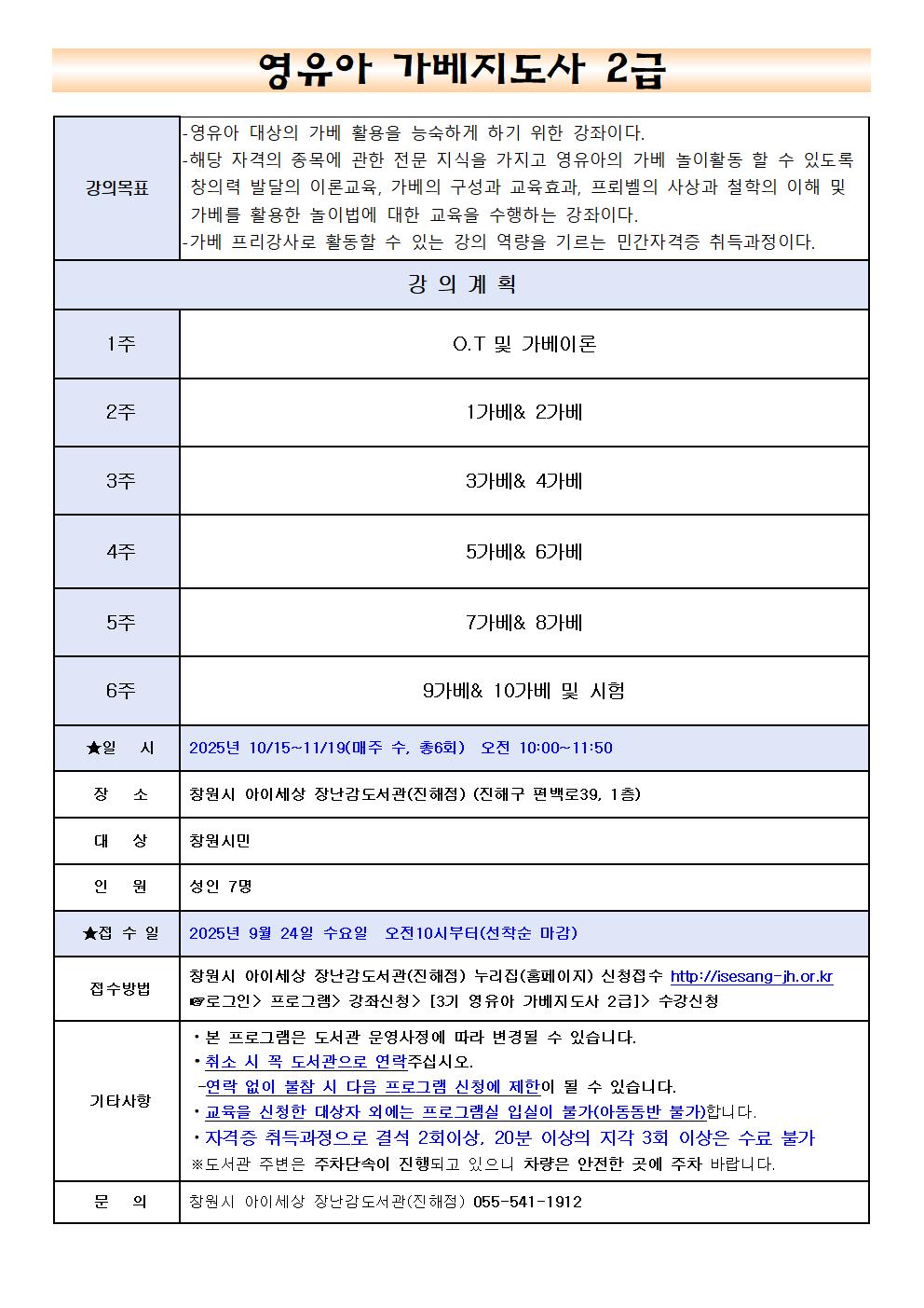 강좌명 | 3기 부모교육) 영유아 가베지도사2급 |