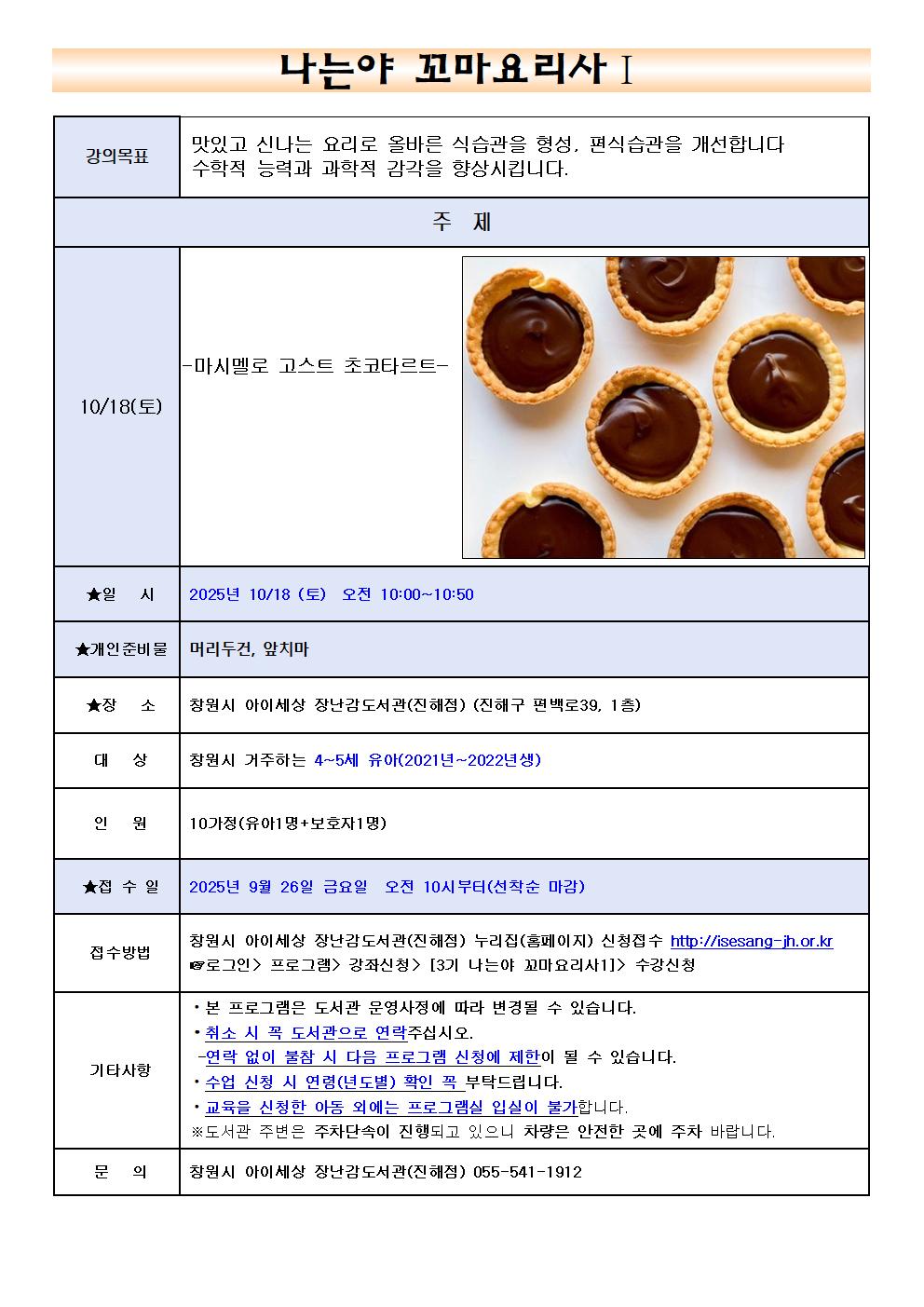 진행기간 | 2025년 10월 18일~2025년 10월 18일 토요일 10:00~10:50 1 회 |