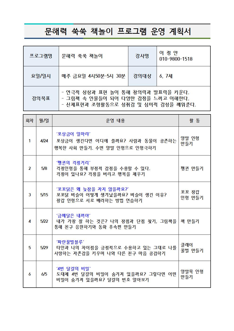 | 강좌명 | 문해력 쑥쑥 책놀이 |
